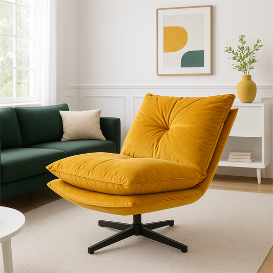 Armchair Zarra, yellow, rotatable 360 degrees, H87x70x96cm, seat height 45cm