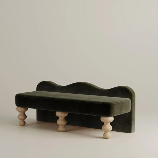 Kimi Bench Contemporary Fully Upholstered Bench with Soft Curves