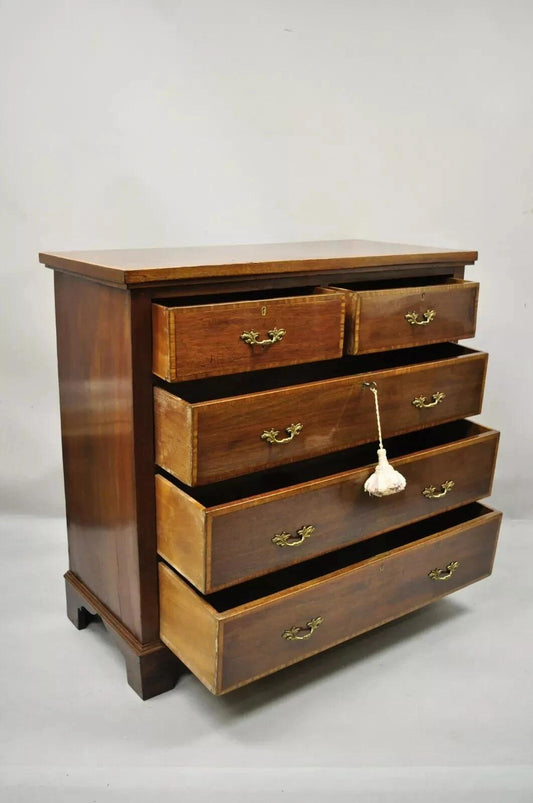 Antique English Georgian Mahogany Chest with Satinwood Inlay – 5 Drawers