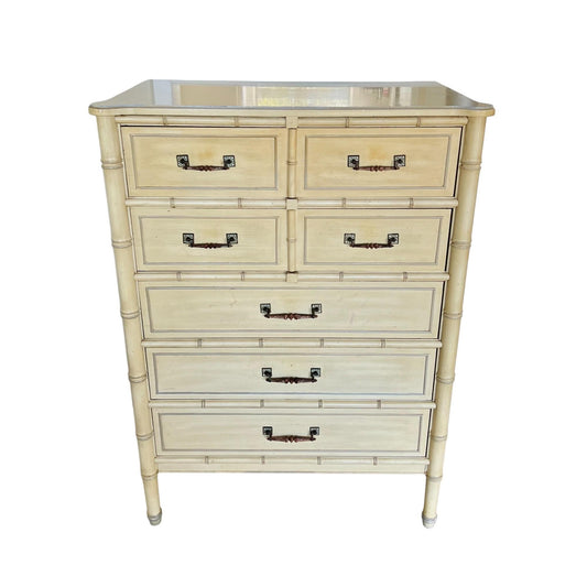 Henry Link Bali Hai Faux Bamboo Highboy Dresser – 1970s Hollywood Regency