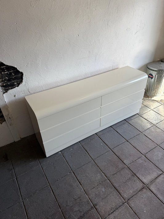 Postmodern Off-White Gloss Laminate Waterfall 6-Drawer Dresser with Chrome Trim