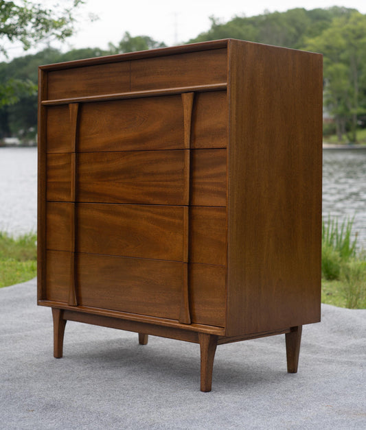 Mid-Century Modern 5-Drawer Tall Dresser – Red Lion