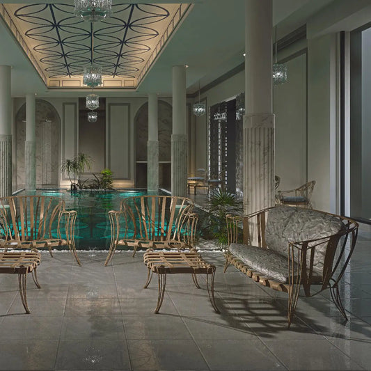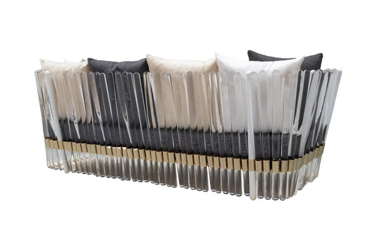 Elegant Patio Couch with Acrylic Details and Gold Stainless Steel Frame