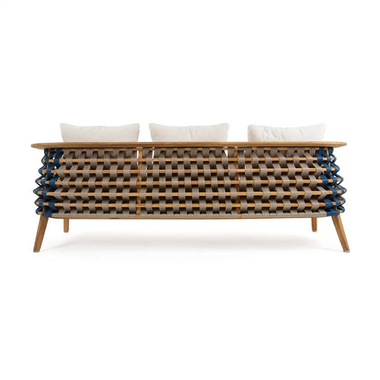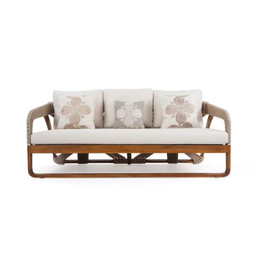 Hand-Woven Rope Outdoor Sofa in Solid Teak