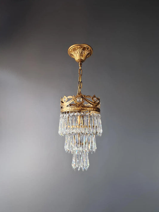 Small Crystal Chandelier Ceiling Light Look Antique Hallway