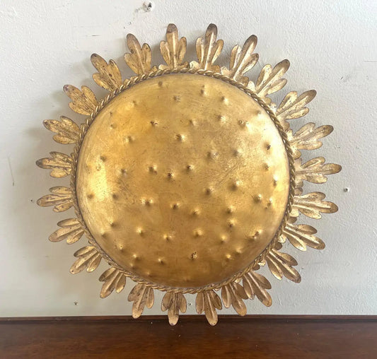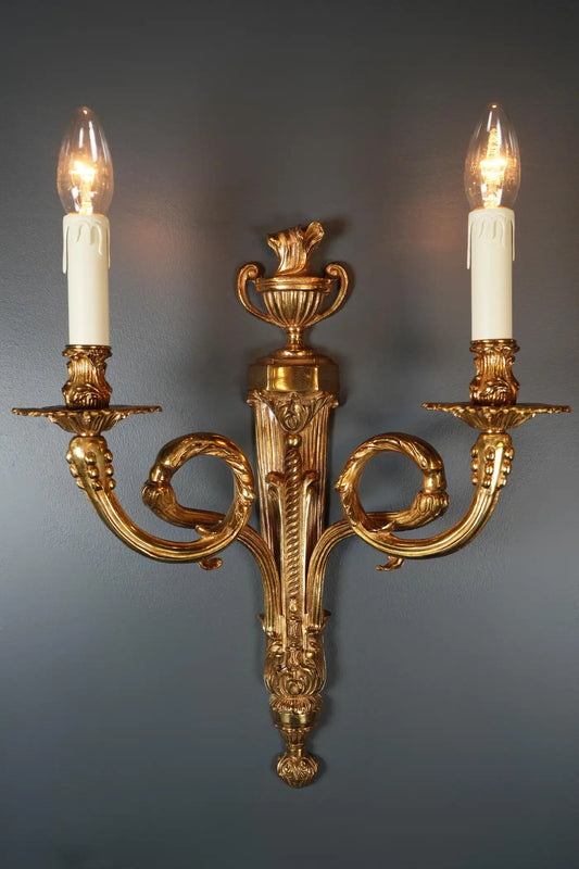Antique Style Brass Wall Lamp Large Art Deco Tradition Gold Circle Whirl