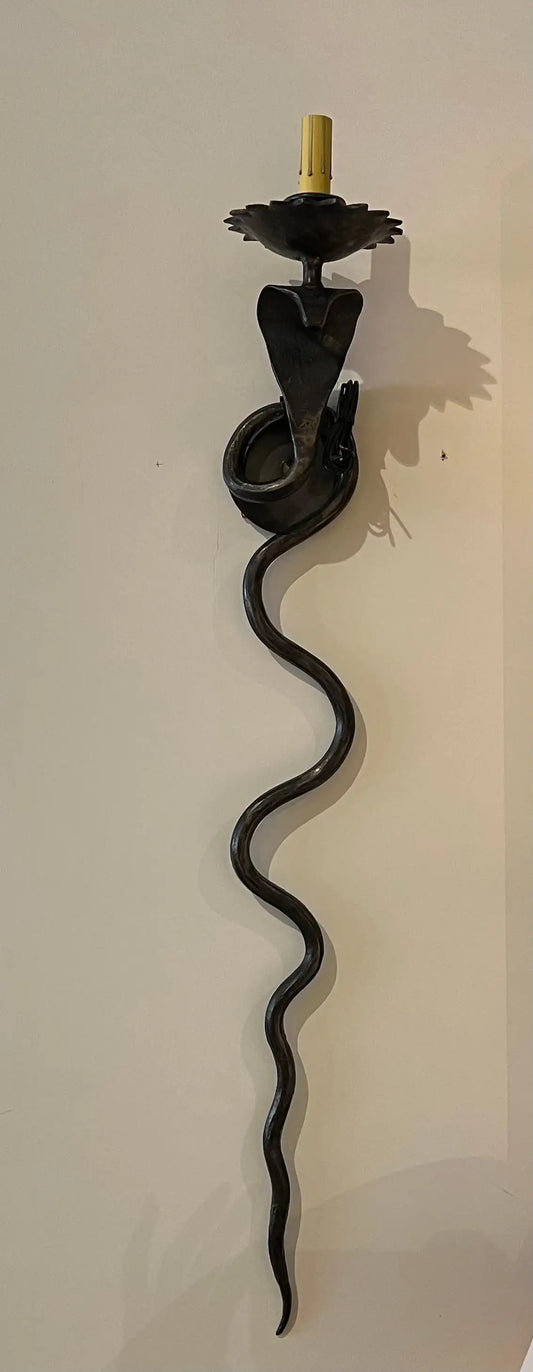 Pair of electrified Serpent Sconces finish in a gunmetal wrought iron finish