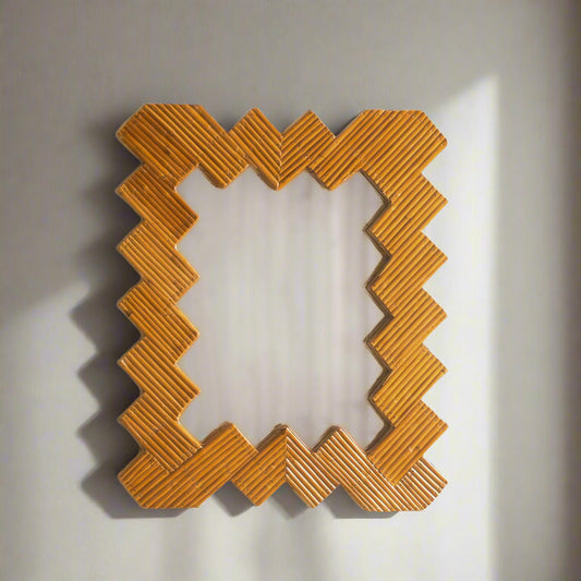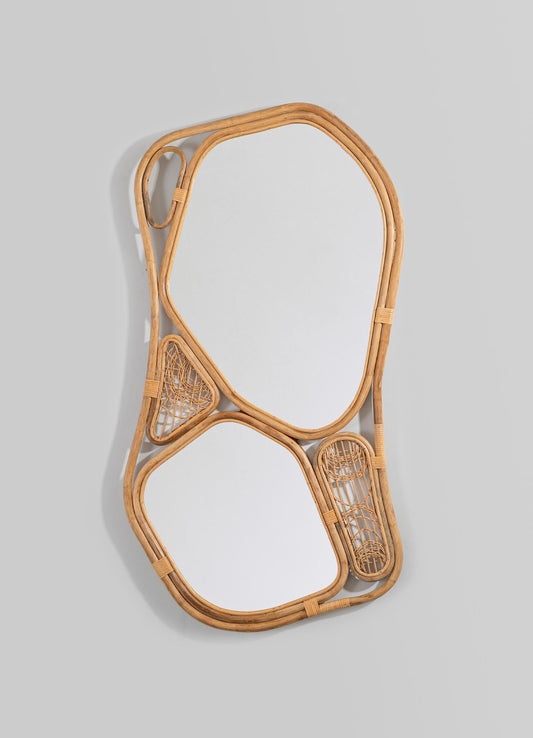 Asymmetrical Wall Mirror with Organic Rattan Cane Frame – Contemporary