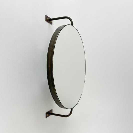 Vorso Wall-Attached Rotating Round Mirror with Bronze Patina Frame – Contemporary