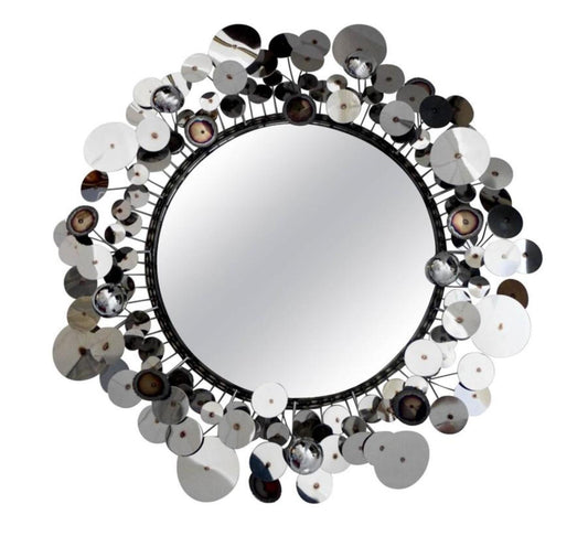 Raindrops Sculptural Wall Mirror – Chrome & Iron Design