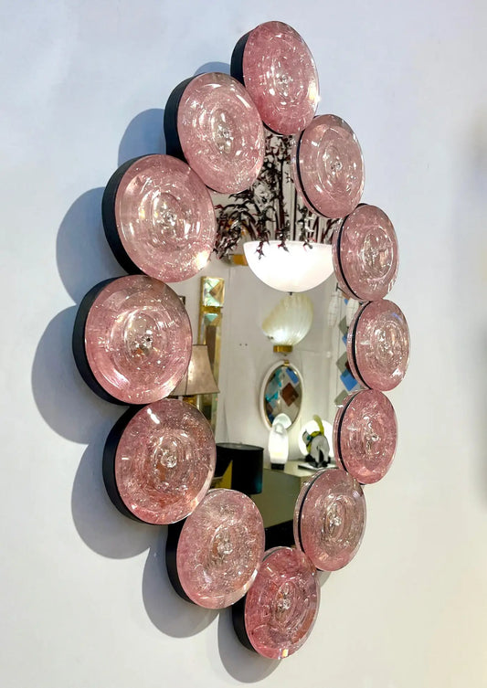 Contemporary Italian Custom Blush Pink Murano Glass Disc Modern Oval Mirror