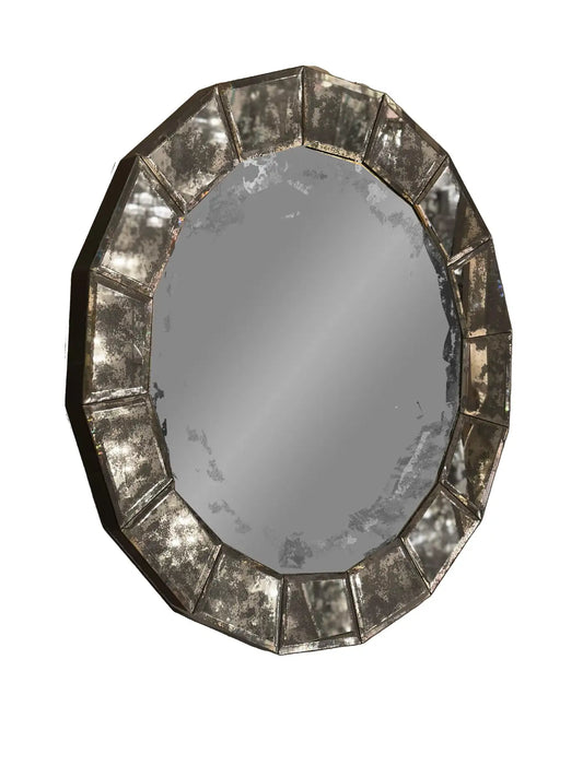 Round Segmented Antiqued Mirror Framed Mirror