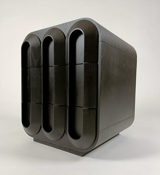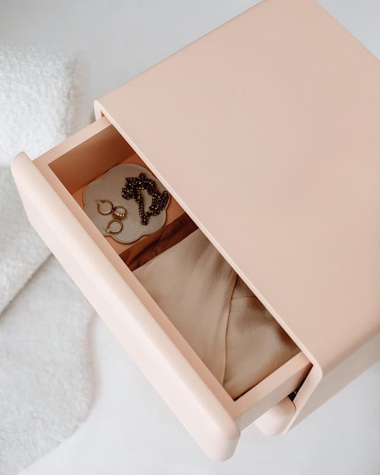 Karo Nightstand – Brutalist-Inspired Coral Lacquered Design