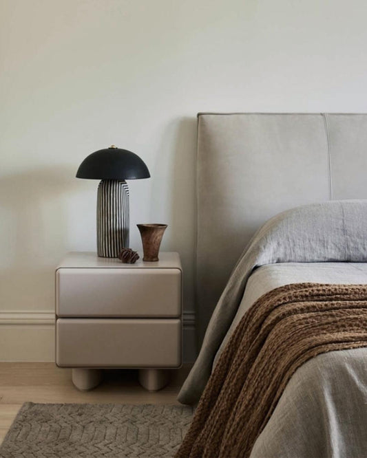 White Linen Wrapped Nightstand – Modern Minimalist Design