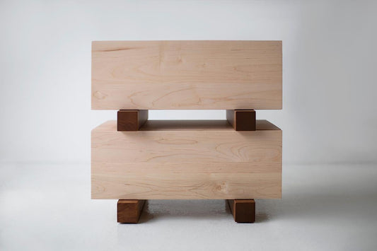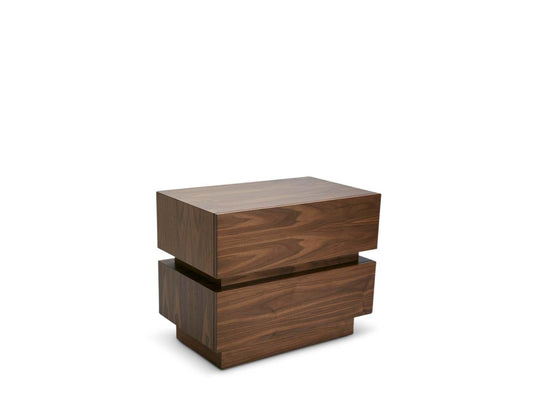 Large Walnut Stacked Box Nightstand – Two Drawers, Mid-Century Modern