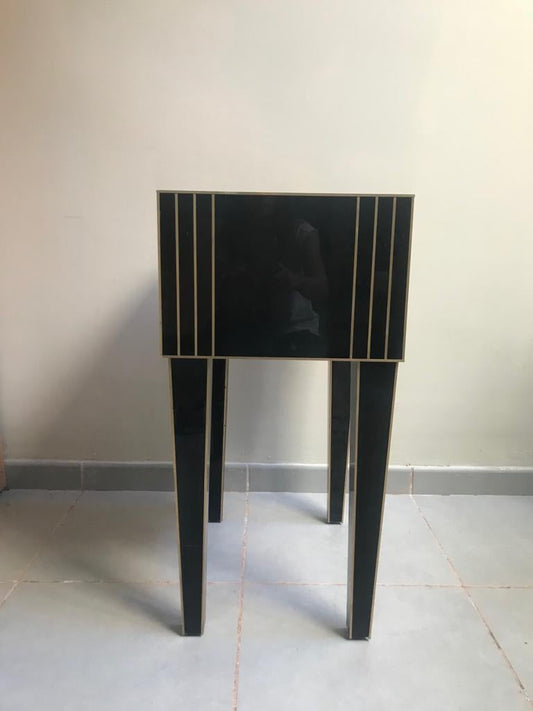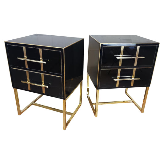 Black Glass Designer Side Tables – Set of 2 with Brass Details