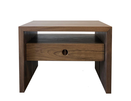Solid Walnut Jameson Nightstand – Waterfall Design with Soft-Close Drawer