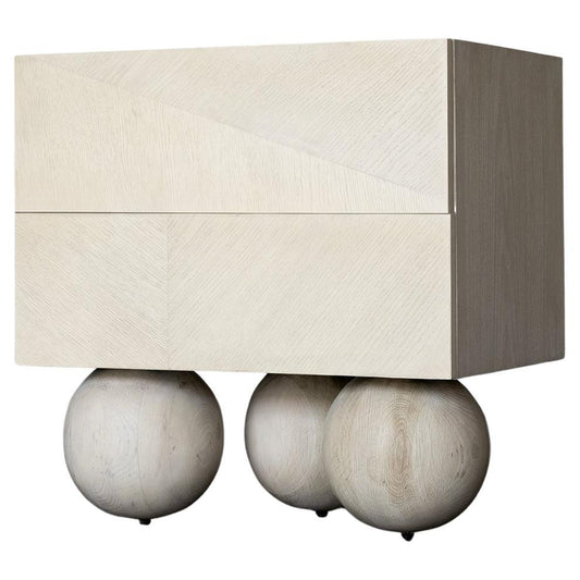 Luna Nightstand – Bleached White Oak with Rift Oak Drawers