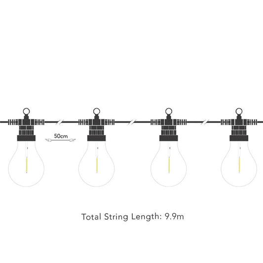 Suri Coastal 9.9M Edinburgh Solar & USB Rechargeable Festoon Lights – 20 Lights