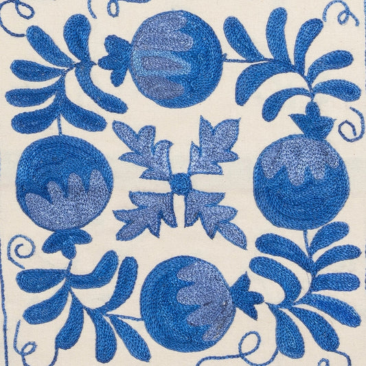 Modern Suzani Silk-Embroidered Pillow Case Cream & Blue, 46 x 46 cm