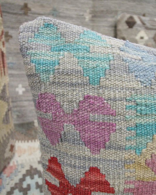 Modern Kilim Wool Pillow Case Blue Geometric, 50 x 50 cm