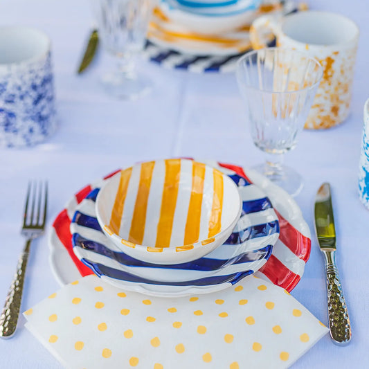 Red Stripe Handcrafted Terra Cotta Dinner Plate