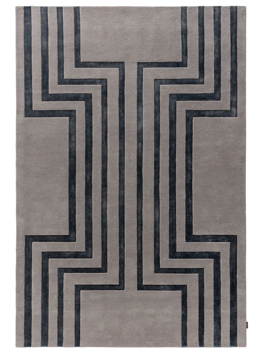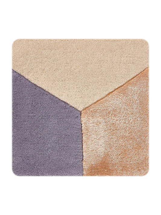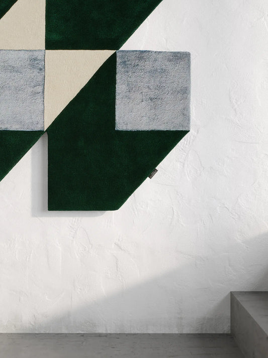Monochrome Cube-Pattern Wool & Lyocell Rug