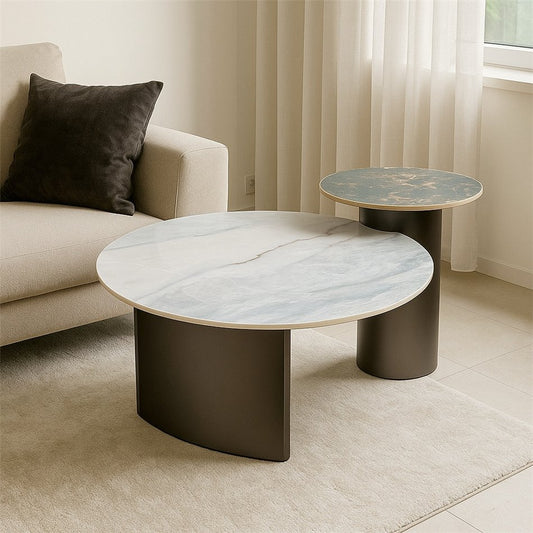 Sintered Stone Coffee Table – Modern Metal & Ash Veneer Design
