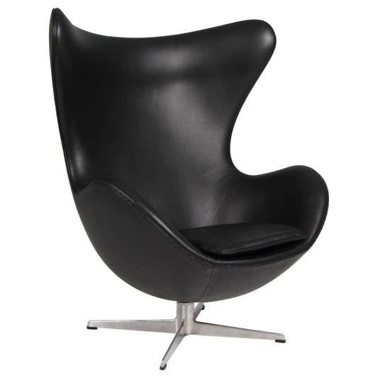 Set of Egg Lounge Chairs – Black Aniline Leather, Iconic Design