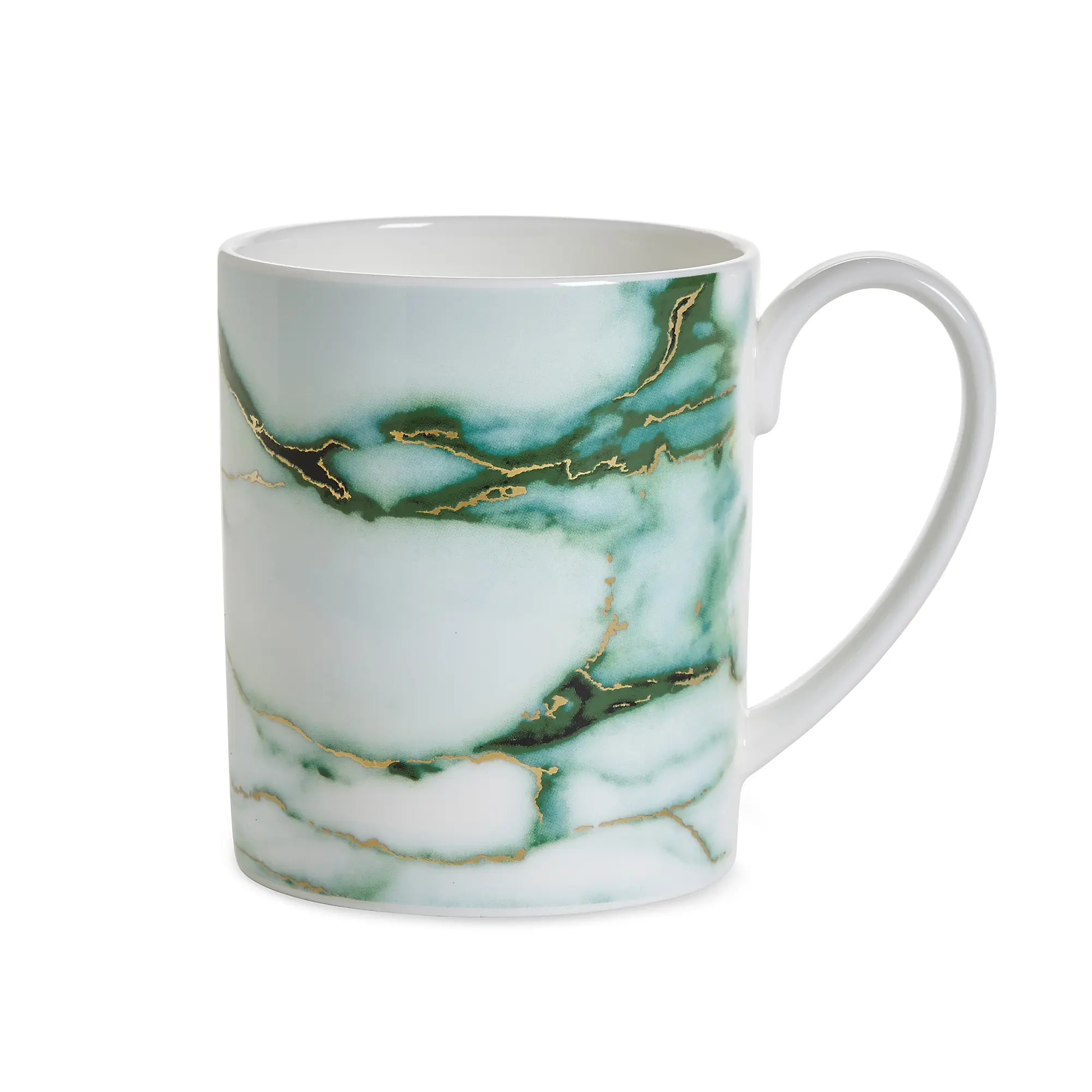 Elevate your daily rituals with the Prouna Marble Mug in Azure, a luxurious piece from the Marble Collection. Crafted from fine bone china, this mug features a striking azure marble pattern complemented by hand-painted 24K gold accents, adding a touch of elegance to your beverage experience. With a generous 12 oz capacity, it's perfect for enjoying your favorite coffee, tea, or hot chocolate. Its timeless design makes it an ideal gift or a sophisticated addition to your own collection.