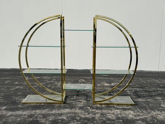 Vintage 1970s Circular Brass & Glass Room Divider Étagère – Mid-Century Modern
