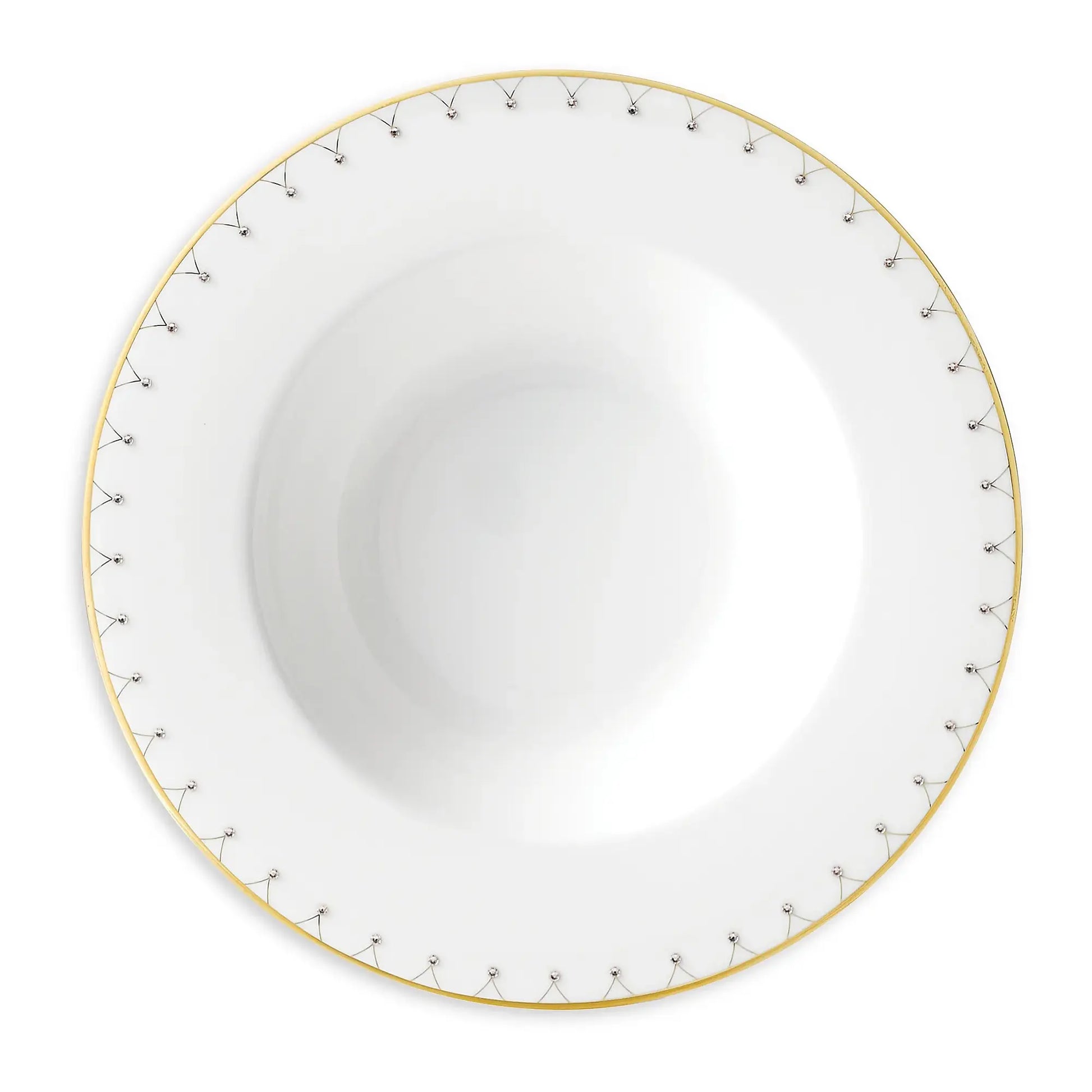 Indulge your table in refined elegance with this Princess Gold soup bowl. Crafted from fine bone china, it pairs pristine white tones with hand-painted 24K gold accents and carefully placed Swarovski crystals for a luxurious, statement look. The delicate ornamentation and sparkling details bring glamour to every meal—ideal for serving soups, pastas, or broth-based starters in style.