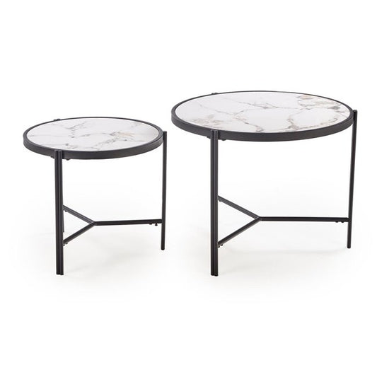 Hatima Coffee Table Set – White Marble & Black Sintered Stone, Ø63×50 cm / Ø48×43 cm