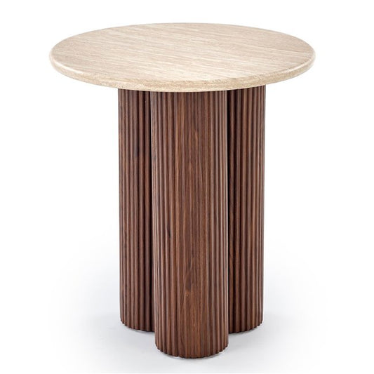 Horotea S Coffee Table – Travertine & Walnut MDF, Ø50×56 cm