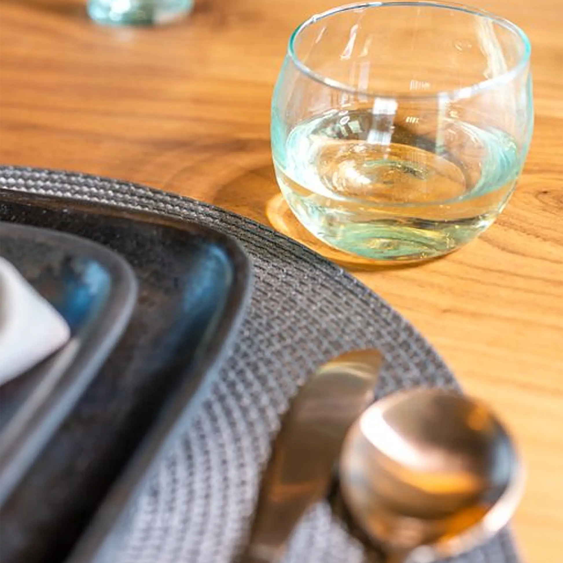 Enhance your dining experience with the Moroccan Stemless Goblet Glasses from Verve Culture. Handcrafted from recycled glass, each piece showcases unique variations in color and design, reflecting the artisanal craftsmanship of Moroccan artisans. The clear glass design adds a touch of elegance to any table setting, making these goblets perfect for serving wine, cocktails, or water during special occasions or everyday use.
