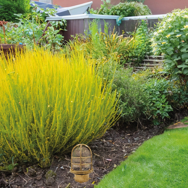 Elevate your outdoor entrances or exterior walls with this elegant coral wall light in a rich brass finish. It features a solid brass frame combined with a dome-shaped ribbed glass diffuser and protective cage shade—evoking a nautical or coastal charm. The design is made to age gracefully, developing a natural patina, yet still holds up under weather thanks to its durable materials. Perfect for porches, patios or any outdoor wall space where ambient, character-filled lighting is desired. Comes with a long lifespan and dependable quality for years of enjoyment.