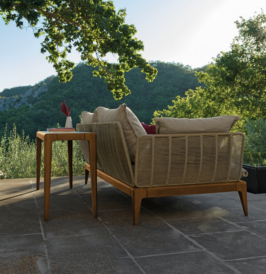 Synthetic rope adorns the arms and wide backrest, adding a touch of coastal charm and providing optimal support for outdoor relaxation.