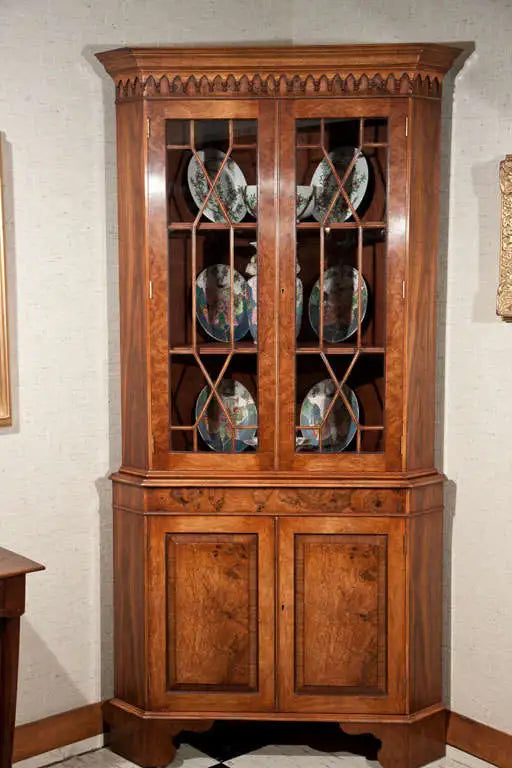 ENGLISH GLAZED DOOR CORNER CUPBOARD IN WALNUT – GEORGIAN STYLE