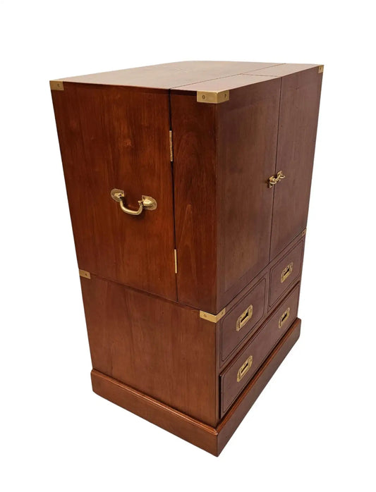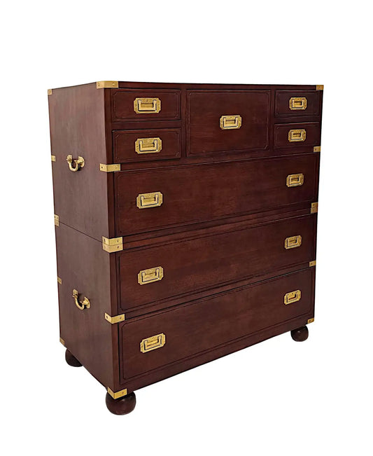 CAMPAIGN STYLE CHERRYWOOD CHEST OF DRAWERS WITH BRASS MOUNTS