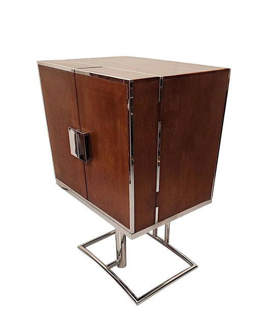 ART DECO CHERRYWOOD AND CHROME DRINKS CABINET / BAR