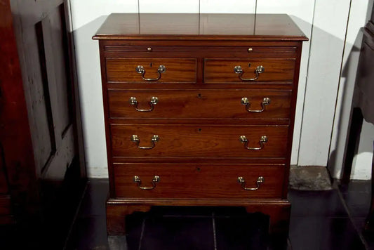 ENGLISH GEORGIAN STYLE MAHOGANY FIVE-DRAWER CHEST WITH BRUSH SLIDE