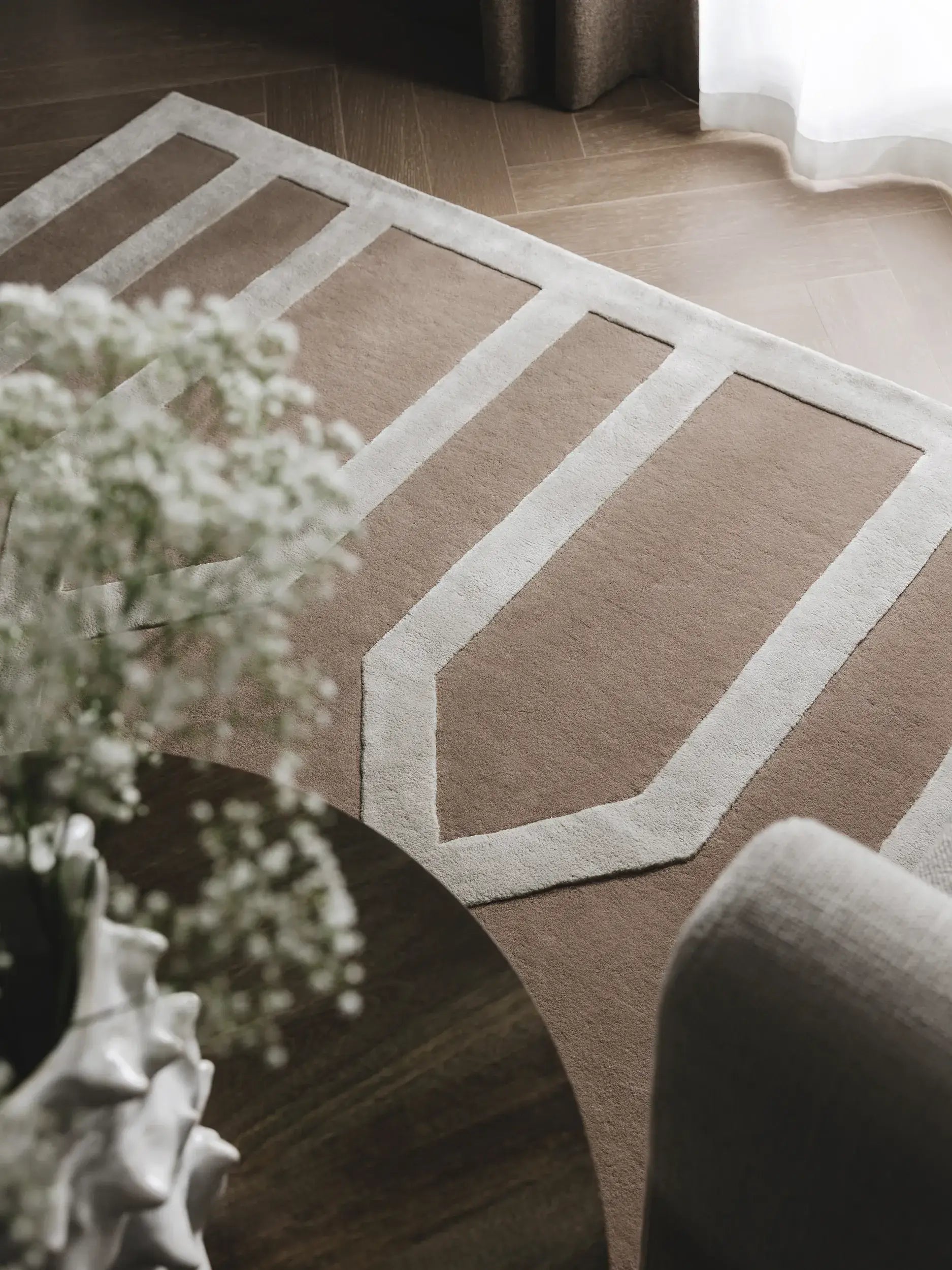 Refined Beige Wool & Lyocell Statement Rug