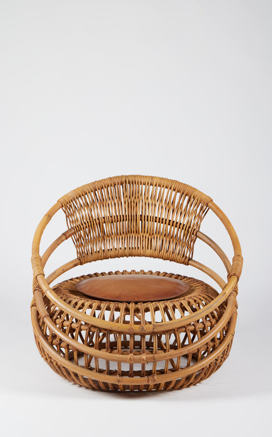Mid-Century Modern Rattan Outdoor Lounge Chair & Ottoman Set