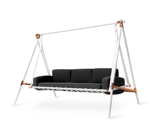 Modern Gray Weatherproof Upholstered Stainless Steel Outdoor Swing Sofa – Fable 3 Seater