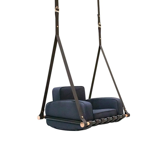 Outdoor Swing Sofa in Brown Waterproof Upholstery with Black Leather Straps