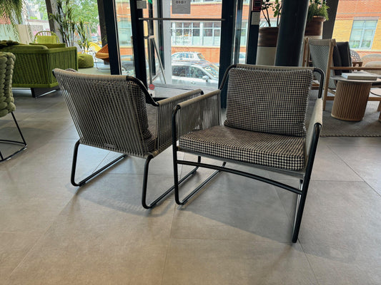 Outdoor Lounge Chairs – Set of 2 in Water-Based Teak with Hand-Woven Polyester Rope