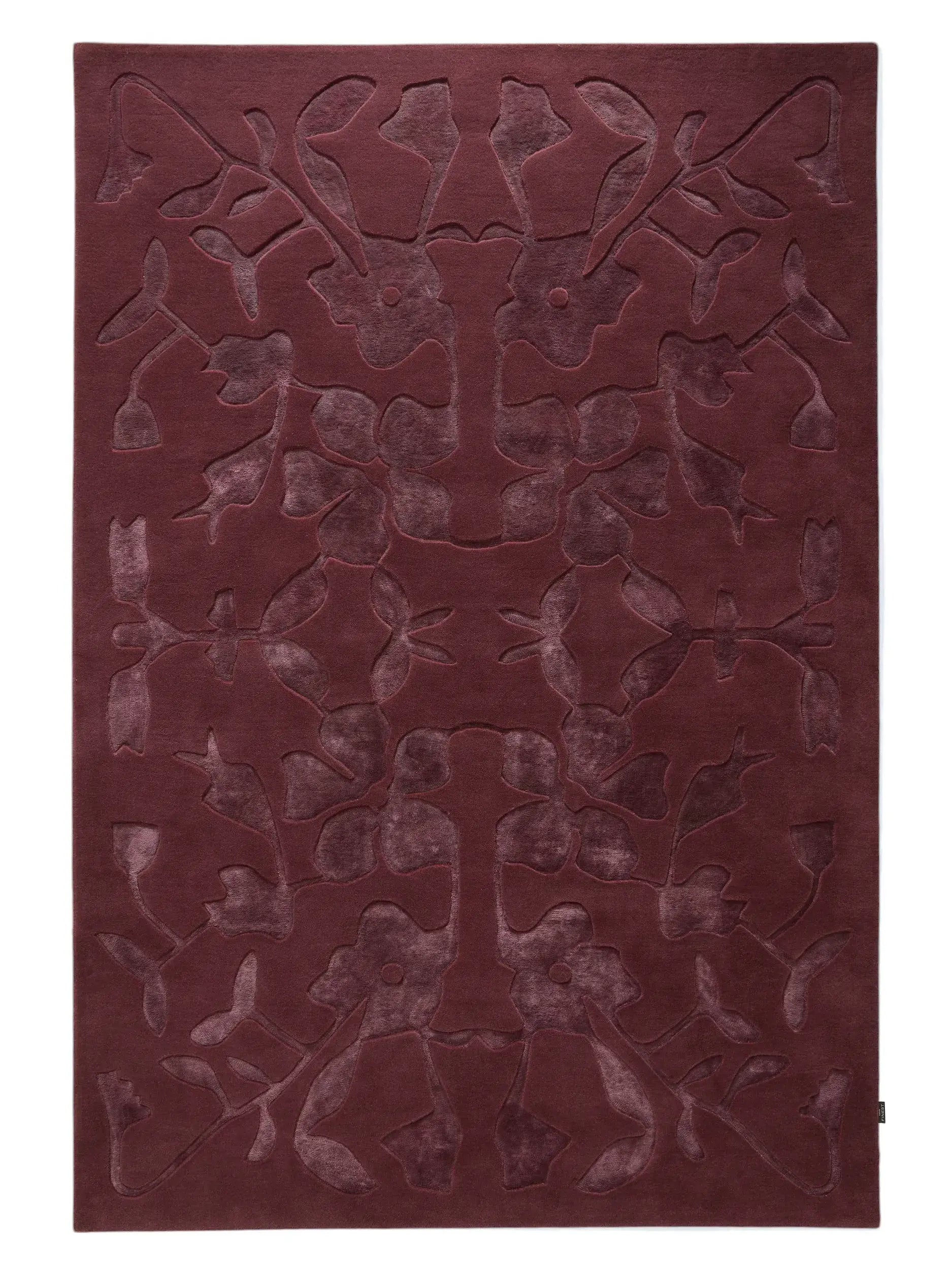 Introduce elegance and depth to your space with this hand-tufted botanical motif rug in rich Bordeaux tones. Crafted from a premium blend of wool and lyocell (TENCEL™), the textured surface features a subtle relief pattern inspired by floral silhouettes and vintage artistry. The luxurious feel underfoot meets practicality with a low-pile profile that’s ideal for living rooms, bedrooms, or elegant lounge areas. With its moody colour palette and timeless design, this rug becomes both a focal point and a complementary layer, harmonising beautifully with wood, brass, or dark metal accents while adding visual warmth and character to any interior.
