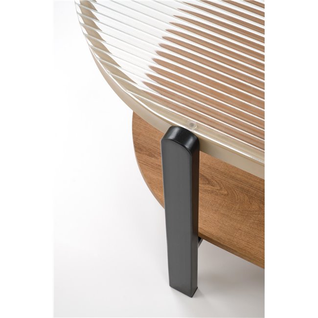 The Hamala coffee table combines modern design with practicality. Featuring a durable MDF tabletop in natural and black tones, complemented by a sleek steel frame and a glass insert, this rectangular table is perfect for contemporary living rooms. Its spacious 110×54 cm surface provides ample room for drinks, décor, and everyday essentials, while the sturdy construction ensures long-lasting durability.