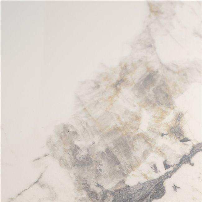 Larne Round Dining Table, Sintered Stone/Metal, White, Ø130×76 cm