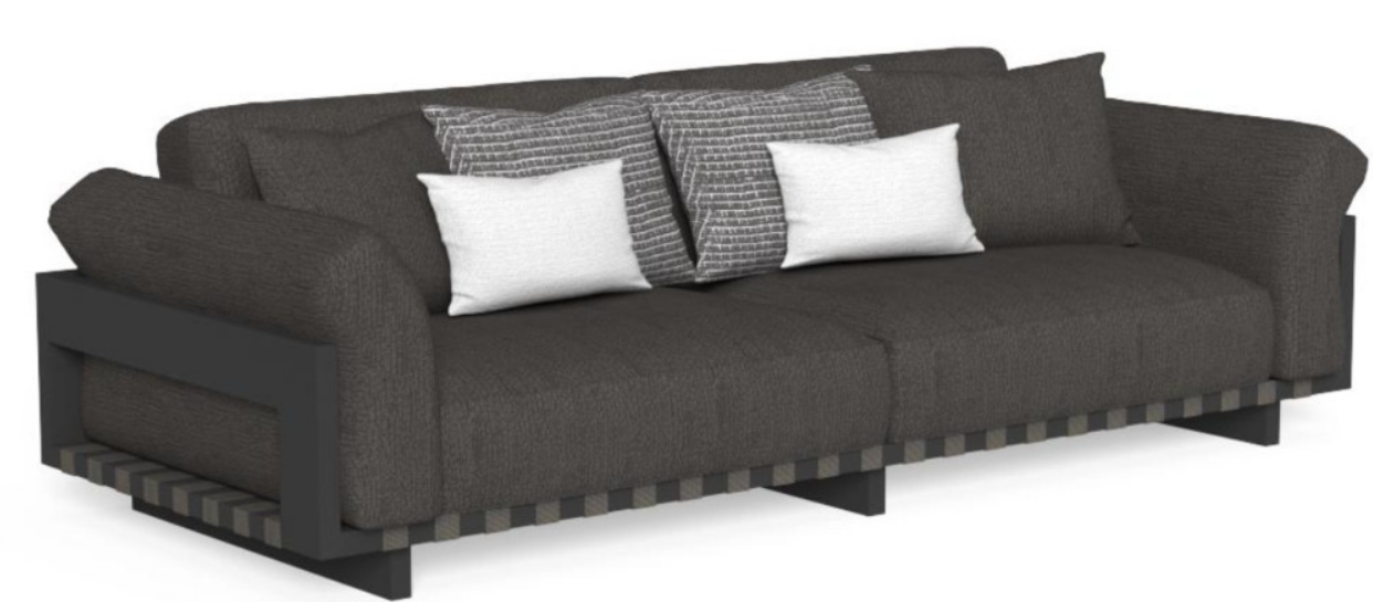 All materials are high quality and designed for the outdoors. The sofa is available in three different color combinations to choose from.